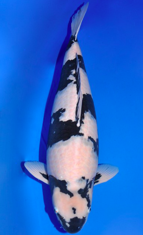 Dari warnanya saja sudah terlihat ciri khas dari ikan koi ini adalah putih pada badannya dan terdapat bercak-bercak hitam.